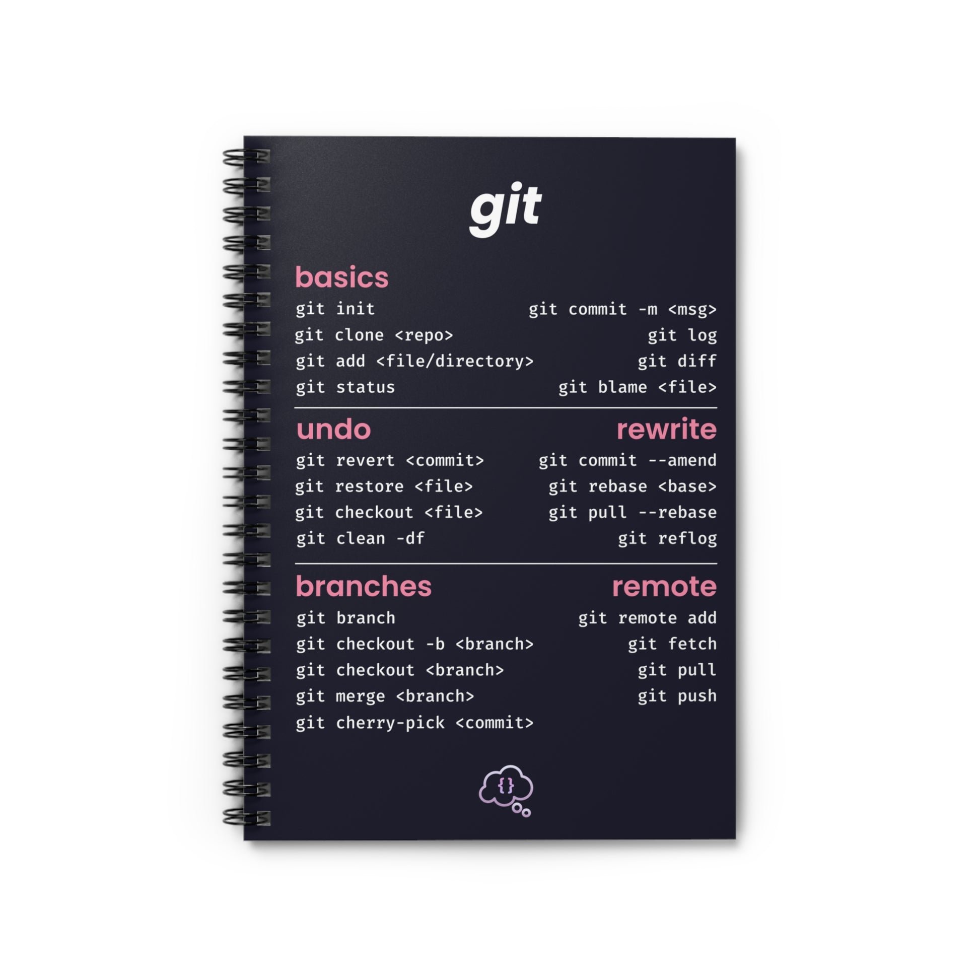 This 2 in 1 notebook and cheatsheet is perfect for helping you take notes whilst learning to code. The front cover acts as a git cheatsheet ensuring you always have a reference guide to hand for the most commonly used commands.